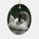 Dieses hübsche, im Stil eines Anhängers gehaltene Ornament zeigt ein Foto eines wunderschönen Schwans. Der Schwan ist ein junger Vogel, man erkennt die grauen Federn am Kopf und das Fehlen eines orangefarbenen Schnacks. Es sieht so aus, als schliefe der Schwan, aber er beugt tatsächlich seinen Federn vor.