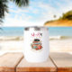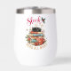 A festive and cheerful Christmas design showcases an adorable black kitten nestled on a stack of books. Beside the books are vibrant poinsettias, pine branches, holly berries, and a steaming cup of cocoa. Golden stars frame the scene, adding a magical touch. The colorful text reads, "'Sleigh all day, read all night." This delightful design is featured on a variety of products, making perfect gifts for book lovers.