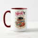 A festive and cheerful Christmas design showcases an adorable black kitten nestled on a stack of books. Beside the books are vibrant poinsettias, pine branches, holly berries, and a steaming cup of cocoa. Golden stars frame the scene, adding a magical touch. The colorful text reads, "'Sleigh all day, read all night." This delightful design is featured on a variety of products, making perfect gifts for book lovers.