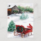 Weihnachten und Winter bringen eine Wasserfarbe mit einer gemütlichen Zuhause und roten Schlitten mit einem roten Kardinal, der den Schnee genießt