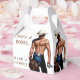 SlipperyJoe's rettend Pferderückfahrt Strohhut, der muskulöser Mann ohne Rumpf, der den Sattel mit einem gut definierten, körperlich geziselten Sechserpack hält, der den Sattel mit schwarzem Gürtel in silbernen Schnallen-Rändelmuskeln in den Artisten-Western-Vibe kelt, die LGBTQIA-Jeans