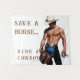 SlipperyJoe's rettend Pferderückfahrt Strohhut, der muskulöser Mann ohne Rumpf, der den Sattel mit einem gut definierten, körperlich geziselten Sechserpack hält, der den Sattel mit schwarzem Gürtel in silbernen Schnallen-Rändelmuskeln in den Artisten-Western-Vibe kelt, die LGBTQIA-Jeans