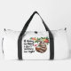 This white duffle bag features a whimsical cartoon of a sloth hanging from a branch, holding a drink in a coconut, surrounded by tropical flowers. The text reads, "If doing nothing is wrong i don't wanna be right." This humorous design is perfect for those who embrace a laid-back lifestyle. Edit color of the bag caps and body in the Design tool to your favored colors.