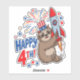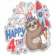 Sloth Happy 4th Rocket Fireworks USA Aufkleber