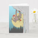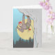 A funny cartoon illustration of a sloth rock climbing, this cute sloth is wearing a climbing harness and is about to slowly clip a bolt on a sport climbing route.