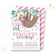 Fêtez la journée spéciale de votre petit avec notre adorable invitation d'anniversaire rose paresseux ! Cette charmante invitation présente un design mignon et paresseux dans une jolie teinte rose, parfaite pour une fête d'anniversaire de fille.