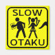 Ein Parodie-Schild, das die Zuschauer warnt, langsamer zu werden! Otaku sind in der Gegend.