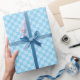 Retro kleines Schachbrettmuster mit der Hintergrundfarbe Ihrer Wahl. Baby blau und ein leichteres Schatten Baby Duschpapier. Geschenkpackung mit klassischem Muster.