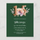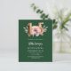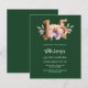 Eine moderne, stilvolle und glamouröse Einladung für eine Quinceañera. Ein smaragdgrüner Hintergrund mit rosa und pfirsichfarbener Blume. Der Name ist mit einem modernen, grünen Handschrift geschrieben. Personalisieren Sie Ihre Party-Daten und fügen Sie sie hinzu. Nummer 15 wird mit einem Schriftart im Ballonstil geschrieben, Skript. 1 Blatt = 1 Einladung mit Druckkante bis Kante.