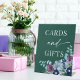 Moderne elegante smaragdgrüne minimalistische Hochzeitstischdekoration Pedestal Zeichen für Geschenke und Karten mit Blume in blau lila, einfach und klassisch Wintergeschirr. Hervorragend für moderne klassische Hochzeit, Vintage Hochzeit und formelle Hochzeit. Entdecken Sie die vollständige Auflistung für passende Elemente. Klicken Sie auf die Schaltfläche Bearbeiten, um dieses Design anzupassen.