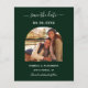 Eine moderne Hochzeit Save the Date Foto Karte. Ein smaragdgrüner Hintergrund, weißer Text. Personalisieren Sie Ihre Foto- und Hochzeitsdetails und fügen Sie diese hinzu.