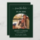 Eine moderne Hochzeit Save the Date Foto Karte. Ein smaragdgrüner Hintergrund, weißer Text. Personalisieren Sie Ihre Foto- und Hochzeitsdetails und fügen Sie diese hinzu.