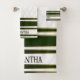 Modernes Set mit weißem, smaragdgrünem und goldfarbenem Badetuch, das sich hervorragend als Geschenk für einen ganz besonderen Menschen eignet, einen Freund und ein Familienmitglied, das schlichte, aber elegante Farbkombinationen und Designs Liebe. Personalisieren Sie den Namen und kaufen Sie jetzt.