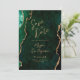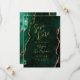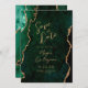 Diese elegante Hochzeitskarte Save the Date ein Hintergrundbild eines smaragdgrünen Aquarells, bestickt mit Imitaten goldenen Glitzer. Der anpassbare Text kombiniert goldfarbene moderne Handschrift, Copperplate und kursiven Schriftart. Die Rückseite ist mit einem smaragdgrünen und goldgelben Agate Design abgestimmt.