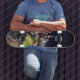 Plymouth Series: Ein Skatedeck mit einem nächtlichen Foto der Annäherung an das Hoe von Plymouth an das historische Barbican. Smeatons Turm, diese weltberühmte Sehenswürdigkeit, liegt im Wappen des Aufstiegs, unverwechselbar mit seinen Rot- und Weißbändern. Bildcode: hrcol90