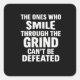 Smile-Grind-Gymnastik-Zitat mit weißem Text Quadratischer Aufkleber