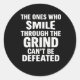 Smile-Grind-Gymnastik-Zitat mit weißem Text Runder Aufkleber