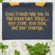 A heartwarming gift for your best friend. This cute bunny and bear silhouette features an inspiring quote about how good friends help you find your smile, hope, and courage.