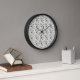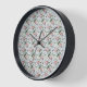 Eine Wanduhr mit einem Muster, das für die Weihnachtszeit mit einem lächelnden Gesicht des Weihnachtsmanns entworfen wurde