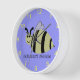 My Original Hand-Painted Graphic Art Design. Cute, smiling little bumble bee with fluttering wings shown on a light purple background with yellow numbers. PERSONALIZE with YOUR child's NAME (insert in place of my sample text). Would make for a nice, cheery wall clock for a kids room. Visit my Store to see more original items (include this full link): www.zazzle.com/tamirazdesigns*