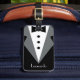 Schwarzweiss-Namenspersonalisiertes der eleganten noblen schwarzen Krawatte des Tuxedo