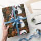 Schwarzweiss-Tuxedokatze trägt eine Weihnachtsmannmütze vor einem Weihnachtsbaum-Katzenliebhaberfeiertags-Verpackungspapier