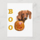 Ihre HUNDEZUCHTVERBAND Rasse sagt Happy Halloween mit einem BOO! Leckerei jemanden zu einem Halloween Dackel Geschenk auf einem t Shirt, Tasse, Karte, Schlüsselanhänger, Mousepad, und mehr.