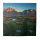 Dieses Foto kennzeichnet eine Ansicht von großartigem Teton von Snake River übersehen während des frühen Morgens.