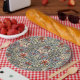 Dieses Design basiert auf einem Muster des britischen Designers William Morris (1834-1896), der auch ein Autor, Händler und politischer Aktivist der Arts and Crafts Movement war. Dieses Schlangenkopfmuster wurde stark von den aus Indien importierten Hütten der Gegenwart beeinflusst, vor allem durch die Verwendung stark kontrastierender Rottöne und Blues, sowie durch die Art und Weise, wie die 3D-Formen von Blätter und Blume verändert und als elegante flache Illustrationen dargestellt wurden. William Morris bewunderte die Tatsache, dass indische Cottons im Allgemeinen mit natürlichen Farben handgedruckt wurden, im Gegensatz zu chemischen, Farbstoffen, und er versuchte, natürliche Farben in seinen eigenen Stoffen zu verwenden. Das ursprüngliche Muster wurde 1876 von William Morris entworfen.