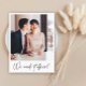 Erzählen Sie Ihre neueste Entdeckungsreise/private Hochzeit mit einem beliebten Foto und diesem modernen, minimalistischen Postkartendesign. Dieses Design funktioniert am besten mit Fotos, die am unteren Rand helle Farben haben. Weitere Details finden Sie auf der Rückseite.