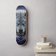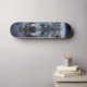 Unleash the wild on the streets with this captivating skateboard deck design featuring a ferocious, snarling wolf head. Rendered in a stunning dark fantasy illustration style, every detail of its textured fur is brought to life, culminating in piercing, electric blue glowing eyes that command attention. Set against a mystical backdrop of a cosmic nebula swirling with deep purples and blues, this design evokes raw power and otherworldly energy. Perfect for riders who embrace their inner beast and want a board that truly stands out from the pack. Ride with the spirit of the wolf.