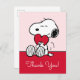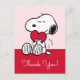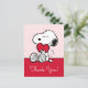 Envoyez vos remerciements avec la plus pure expression d'affection ! Cette belle carte de remerciement Snoopy présente le beagle adoré tenant doucement un cœur rouge vif sur un fond rose doux. C'est la carte parfaite pour exprimer une profonde gratitude, que ce soit pour un cadeau attentionné, un geste gentil ou pour célébrer l'amour à toute occasion. Le message à l'intérieur de la carte correspond à vos sentiments sincères. L'illustration classique de Snoopy en noir et blanc associée au fond rose doux crée un salut instantanément chaleureux et affectueux que les destinataires apprécieront.