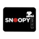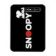 Snoopy entspannt sich gegen einen Felsen auf der Spitze seines Namens in Englisch und Japanisch.