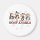 Vier bezaubernde Weihnachtsangels mit Winterhütten und Ohrmuffeln halten jeweils einen Schneemann und der Text lautet "Snow Angels" auf bunten T - Shirt, Sweatshirts, Grußkarten, Tasse, Mousepads und anderen Urlaubsprodukten!