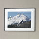 Farbposter mit einem landschaftlichen Landschaftsbild des schneebedeckten Mount Baker, einem hohen, vulkanischen Höhepunkt in den Nordkaskaden des Staat Washington. Passen Sie Ihre Poster-Größe nach Ihren Wünschen an.