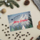 Weihnachts-Urlaubskarte mit einem landschaftlichen Foto von schneebedeckten Monte Hood mit dem Schlitten des Weihnachtsmanns und den Weihnachtsbäumen. Ideal, um Feriengäste aus dem Pazifischen Nordwesten zu schicken! Wählen Sie aus einer matten oder glänzenden Stilkarte.
