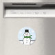 Schneeschuhmagnet mit einem skurrilen Schneemann an einem schneebedeckten Tag. Fügen Sie dem niedlichen und lustigen Winterurlaub-Magneten Text hinzu, um ihm Ihre eigene Touch zu geben.