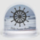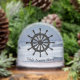 One side shows ship's wheel in black, with white highlights. The reverse shows black anchor with golden rope. Both images set in front of crashing waves. Personalize with Ship's Name at bottom on both sides (in black). A perfect gift for the sailor in your life.