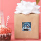 A Christmas sticker with a beautiful snow globe with Santa Clause, Reindeer and a Christmas tree.