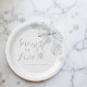 Serve up style at your winter celebration with these elegant "Snow in Love" Bridal Shower Plates! Featuring shimmering silver snowflakes, a romantic script font, and a dainty white coquette bow, these plates perfectly match the rest of the Snow in Love collection for a beautifully coordinated look.