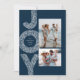 Ein festlicher Fest JOY rahmen zwei Fotos auf dieser einzigartigen Weihnachtskarte. Ideal, um Familienurlaub zu verbringen, mit einem senkrechten und waagerechten Foto auf einem klassisch marineblauen Hintergrund. Die Rückseite der Karte ist eine passende blaue gesprenkelt mit einem koordinierenden weißen Schneemuster.