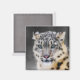 Sehr cooler Leopard mit schönen Gesichtsmarkierungen, blauen Augen und einer rosa Nase, bedeckt mit einem leichten Stäuben von Schnee. Ein tolles Geschenk für alle, die große Dschungelkatzen Lieben.