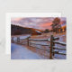 Dieses Foto verfügt über eine schneebedeckte rustikale Scheune vor einem schönen Sonnenuntergang auf einer Colorado-Ranch.