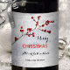 Ein festliches Weinetikett mit roten Beeren auf glitzerndem Schnee. Schön als Weihnachtsgeschenk!