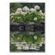 Cette carte de notes présente une image époustouflante d'un buisson d'hydrangée à boule de neige blanche avec des reflets.