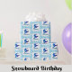 Ce papier d'emballage cadeau d'anniversaire présente mon snowboarder en acrylique bleu.