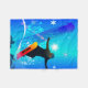 Snowboarding, Snowboarder mit Brett auf blauem Fleecedecke