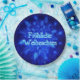 Ein Schwarm blauen Fraktals Schneeflocken. Deutscher Text mit dem Titel "Froliche Weihnachten" erscheint in leuchtendem Blau und Weiß.