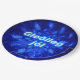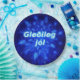 Ein Schwarm blauen Fraktals Schneeflocken. Der isländische Text "Gleðileg jól" (Frohe Weihnachten) erscheint in blau-weiß.