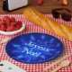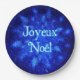 Ein Schwarm blauen Fraktals Schneeflocken. Französischer Text, "Joyeux Noё l" erscheint in leuchtend blau und weiß.